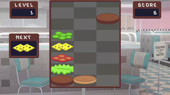 Lunch Rush is an arcade-style puzzler where you rearrange the board to make the falling ingredients land where they're needed. Create tall burgers for maximum points, or just keep your workspace clear as best you can.