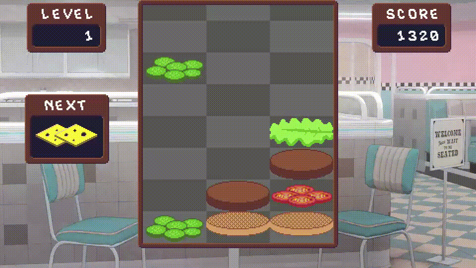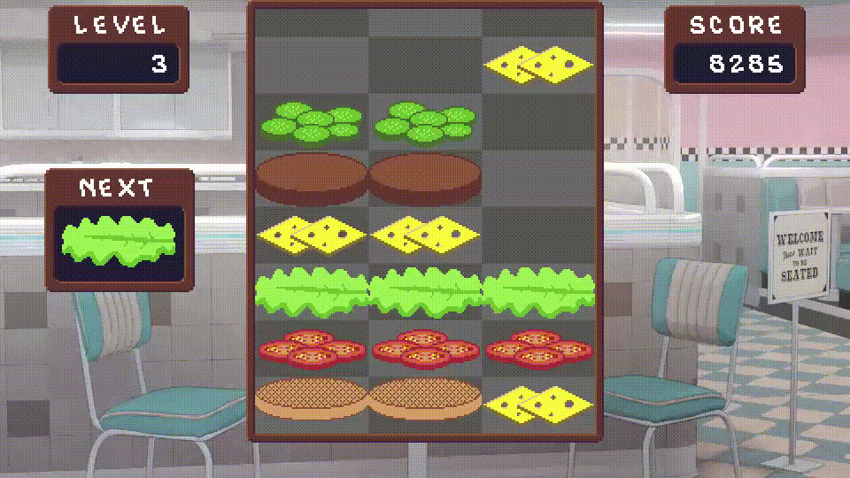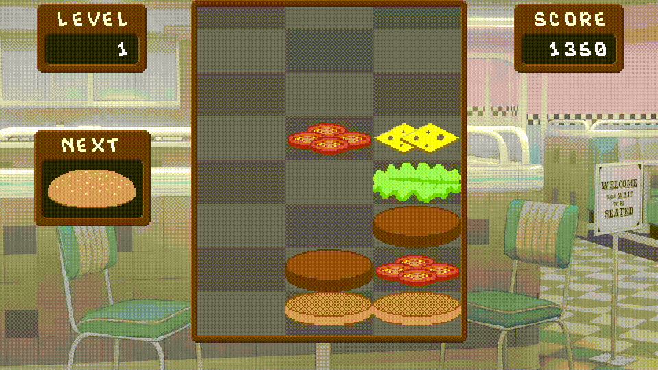 If you assemble ingredients between a bun base and bun top, the entire burger will be cleared from the board for a huge amount of points.